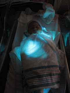 We had to stay in the hospital an extra day because she had a little bit of jaundice. We had to keep her on these lights all the time. She was our little glow worm.